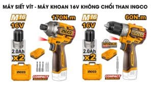 Máy siết vít và máy khoan 16V không chổi than INGCO CIRLI16178-CDLI16682
